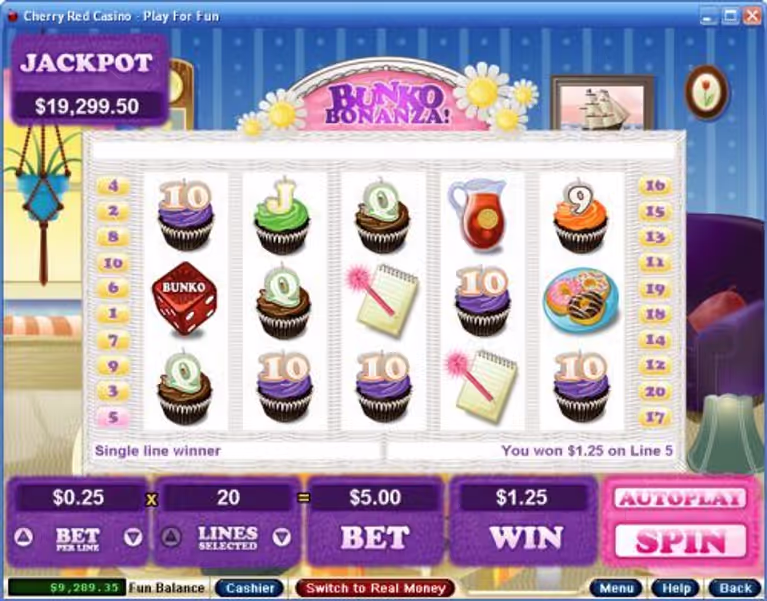 At its heart, Bunko Bonanza Slots is all about simple mechanics paired with plenty of opportunities to win. You’ll be spinning five reels across 20 paylines, which means there are loads of ways to line up those tasty symbols. The game uses a mix of classic card values—9, 10, J, Q, K, and A—along with themed images like notebooks, bells, cakes, and chips. Each icon is instantly recognizable and adds to the playful food theme. The Bunko Dice symbol stands out as the scatter, unlocking some of the slot’s most exciting features. Whether you’re a seasoned spinner or new to online slots, the straightforward layout makes it easy to jump in and start chasing those sweet combinations.